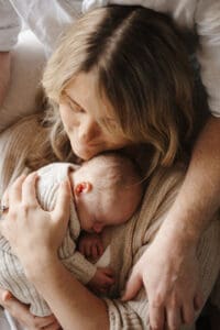 But please don’t panic if you miss this timeframe. Beautiful, meaningful photos can be made at any age. An experienced photographer will simply adapt the session to suit your baby. We might focus more on their bright, awake moments or capture more of those lovely, interactive family snuggles.