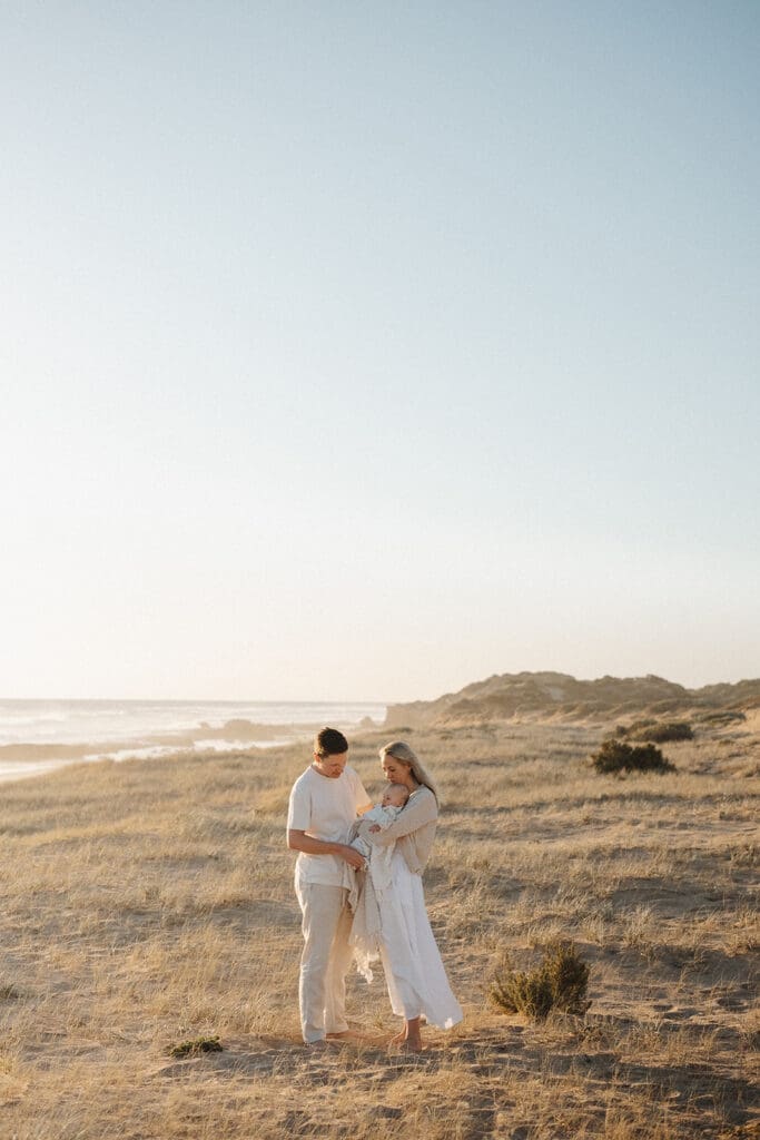 St Andrews Beach is a hidden gem along the Mornington Peninsula — wild, remote, and breathtakingly open. Here, the ocean feels endless, stretching out under a wide sky. There are rolling grassy dunes that add texture and depth to every frame. It’s a place where families can truly breathe, explore, and feel like they’ve escaped the rush of the city.